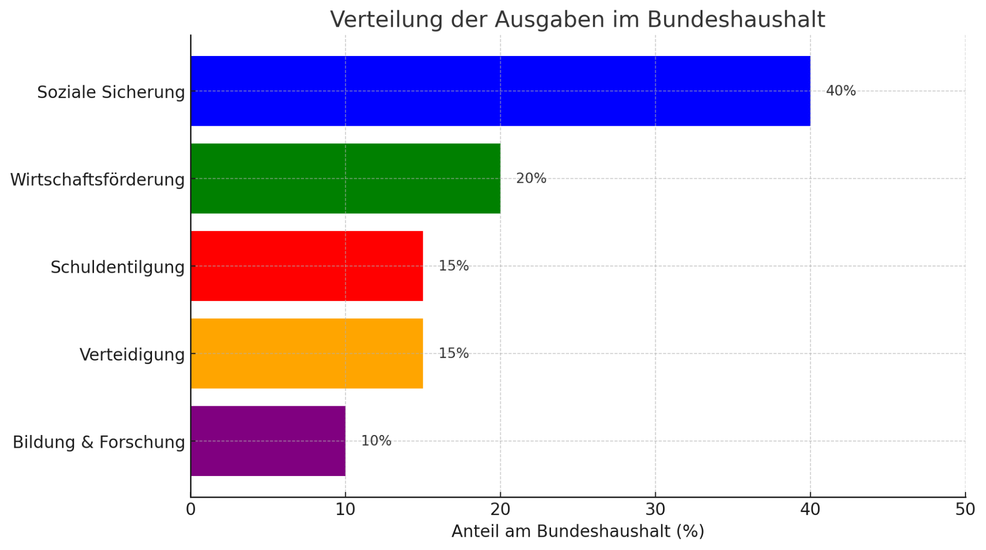 Bundeshaushalt Der stellt den zentralen Finanzplan der Bundesregierung dar und regelt die Verteilung und Verwendung öffentlicher Mittel. Die bedeutendsten Ausgabenpositionen spiegeln die wichtigsten gesellschaftlichen und wirtschaftlichen Herausforderungen wider, denen Deutschland derzeit gegenübersteht. Hierzu zählen insbesondere die soziale Sicherung, die wirtschaftliche Stabilisierung, die Schuldentilgung sowie die Verteidigung und Investitionen in Bildung und Forschung. Diese finanziellen Aufwendungen sind unerlässlich, um den sozialen Frieden zu wahren, die Wettbewerbsfähigkeit der Wirtschaft zu sichern und eine langfristige Zukunftssicherung zu gewährleisten.